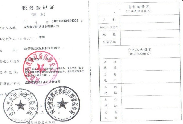 成都海潔洗滌設備有限公司   地址:成都雙流區金橋鎮金河村1組1號、2號